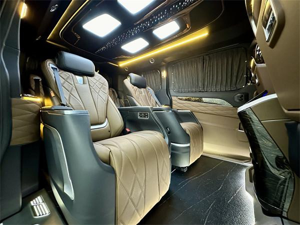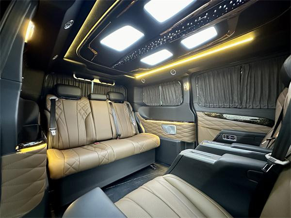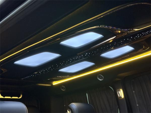 • 丰富配置:配备24寸智能液晶中控屏,集成无线网络、手机互联、智能办公等功能。还有流媒体后视镜、多色幻彩氛围灯、定制天幕顶灯、车载冰箱、无线充电、车载电视、负离子香氛系统等。