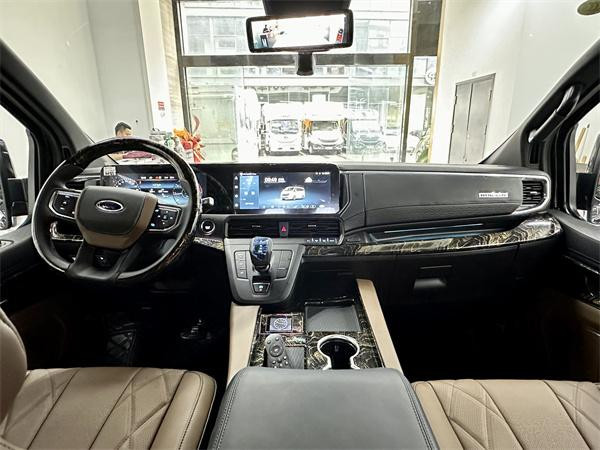 大家好我是白暖。福特黑武士七座商务车是由福特与沃森威尔联合打造,基于福特途睿欧底盘升级而来的高端MPV。:采用全黑车身涂装,搭配“磨砂亮光复式涂装”工艺,“双六边形大嘴”进气格栅,中网可选装猛禽同款熏黑样式,搭配立体字母“F.O.R.D”车标,霸气十足。